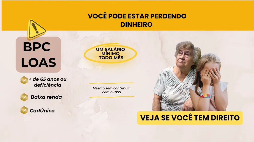 O Benefício de Prestação Continuada (BPC/LOAS), previsto na Lei Orgânica da Assistência Social (LOAS), garante o pagamento de um salário mínimo mensal a pessoas em situação de vulnerabilidade social. Diferente dos benefícios previdenciários, não exige contribuição ao INSS. Seu objetivo é assegurar o mínimo existencial a quem não possui meios de se sustentar.